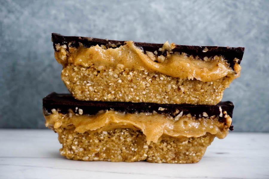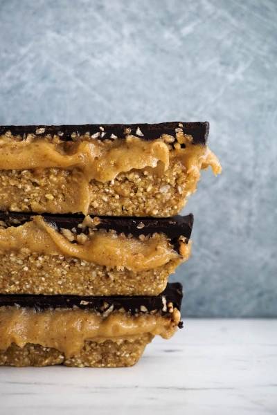The best things about this slice? You probably have all of the ingredients in your pantry right now, it’s naturally sweetened, high in protein and fibre, comes together with 10 ingredients and is a totally drool-worthy combination of salted caramel, chocolate and peanuts.